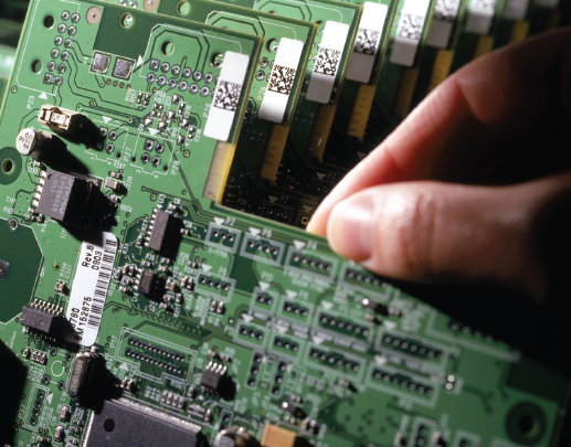 貼于線路板、金屬零配件,耐化學(xué)品及波峰焊、回流焊等高溫工藝,保持良好的條碼可讀性。