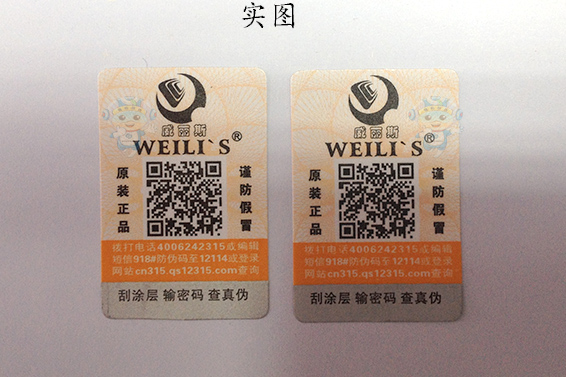 3、優(yōu)勢特點: 二維碼防偽標簽具有以下優(yōu)勢特點: 1)查詢便捷:使用手機微信,即可通過移動網(wǎng)絡隨時隨地進行查詢產(chǎn)品真?zhèn)涡畔ⅰ?2)品牌宣傳:消費者在核對產(chǎn)品信息的同時,可與企業(yè)互動,增強用戶對品牌的信賴。 3)數(shù)據(jù)收集:能夠對顧客數(shù)量、行為進行準確抓取并統(tǒng)計,并實時獲取消費者反饋的信息。 4)打擊假冒:加密二維碼的形式加大了造假者的造假成本,促使造假無利可圖。