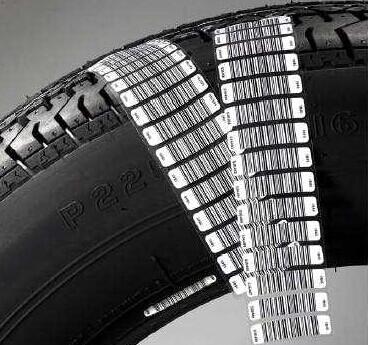 產(chǎn)品名稱:輪胎硫化標簽 產(chǎn)品介紹:標簽以聚酯薄膜(PET)為基材,帶有永久性橡膠基壓敏膠和適合熱轉(zhuǎn)移打印的表面涂層,主要為輪胎生產(chǎn)過程中追蹤批號和管理質(zhì)量而設計。標簽主要貼在輪胎的胎唇位置,整體可耐溫達到200℃,如配合專門的碳帶使用,標簽可經(jīng)受住整個硫化制程中的表面摩擦和酸堿腐蝕。另外,標簽帶有的橡膠基膠水也可保證在整個硫化過程中標簽不脫落,硫化后標簽與輪胎融為一體,長期保證條碼及數(shù)字的可讀性。